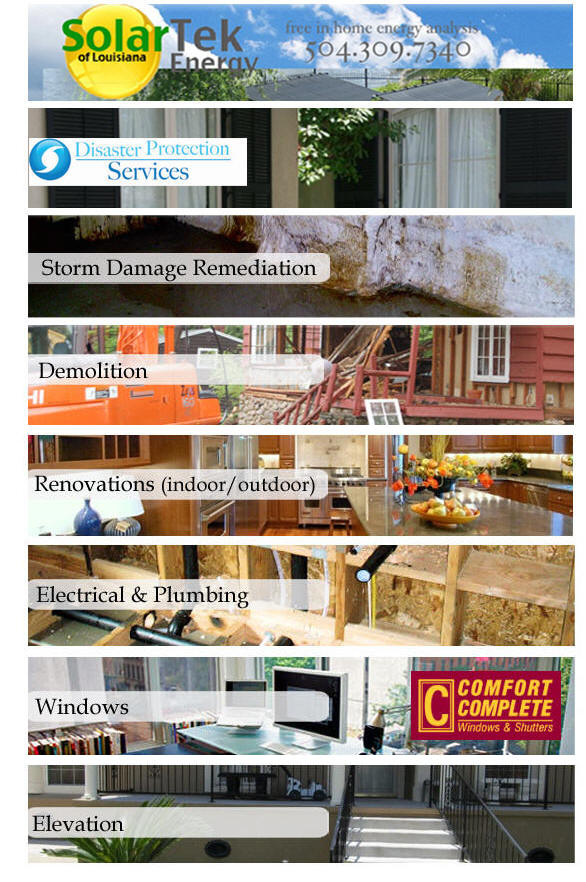 Hurricane Damage Remediation Kitchens Bedrooms Living Rooms/Great Rooms Bathrooms Interior/Exterior Improvements Painting Stucco Siding Windows Patios and Decks